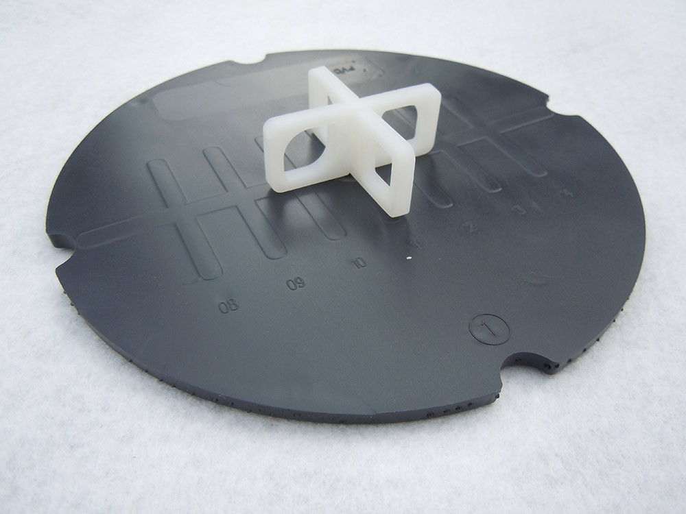 This circular pad is shaped into a 150mm diameter flat disc made from PVC. A separate cross-spacer crafted from polypropylene can be loosely laid onto the top surface to retain spacing between each slab. If you are using this pad for decking, a cross-spacer is not necessary.