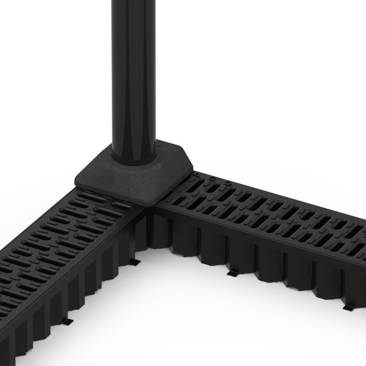 This connector can be fitted perpendicular or in-line with the channel, making for neat, trip-free installations. With a 68mm diameter for circular pipes, it is specifically designed for the ACO HexDrain channel system.