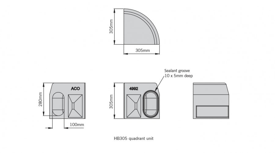 Features & Benefits: ACO KerbDrain HB305 Half Battered Quadrant Unit - 305mm
