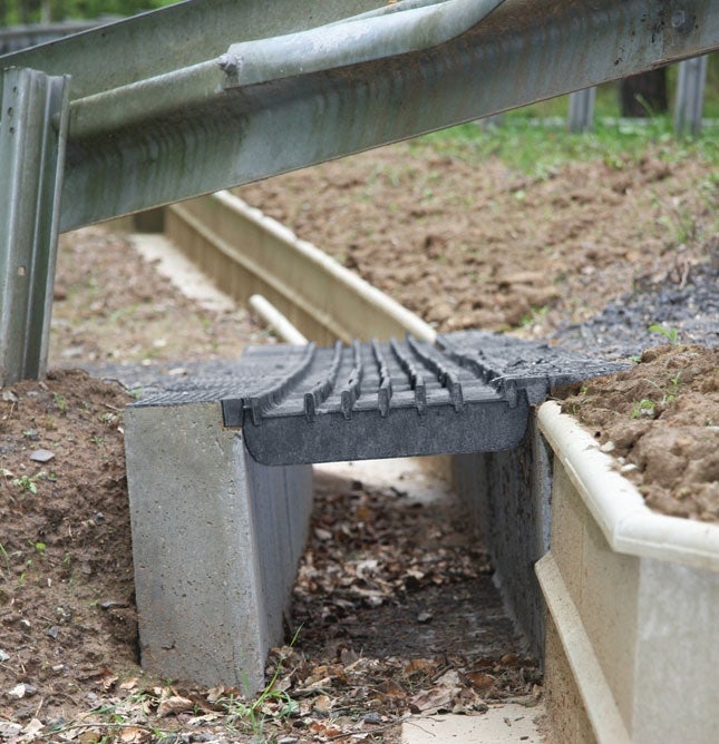 The channel wall aligns with the ACO Guide Wall to provide unbroken guidance, while the grid is designed to prevent small animals from entering the dangerous area. The grid allows these animals to drop through into the channel below, making it easier for them to follow the next crossing.