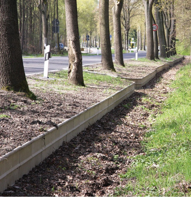 The system comprises standard one-metre straight lengths and additional elements to cater for changes in gradient or direction. Integral barriers on the front face of the system prevent small animals from climbing into dangerous areas. The front foot area itself suppresses vegetation, providing a clear movement area for animals. The system does not use metal reinforcement, preventing animals from being disoriented, but does consist of non-absorbent surfaces with minimal thermal conductivity. This ensures the surface is ideal for amphibians to move along.