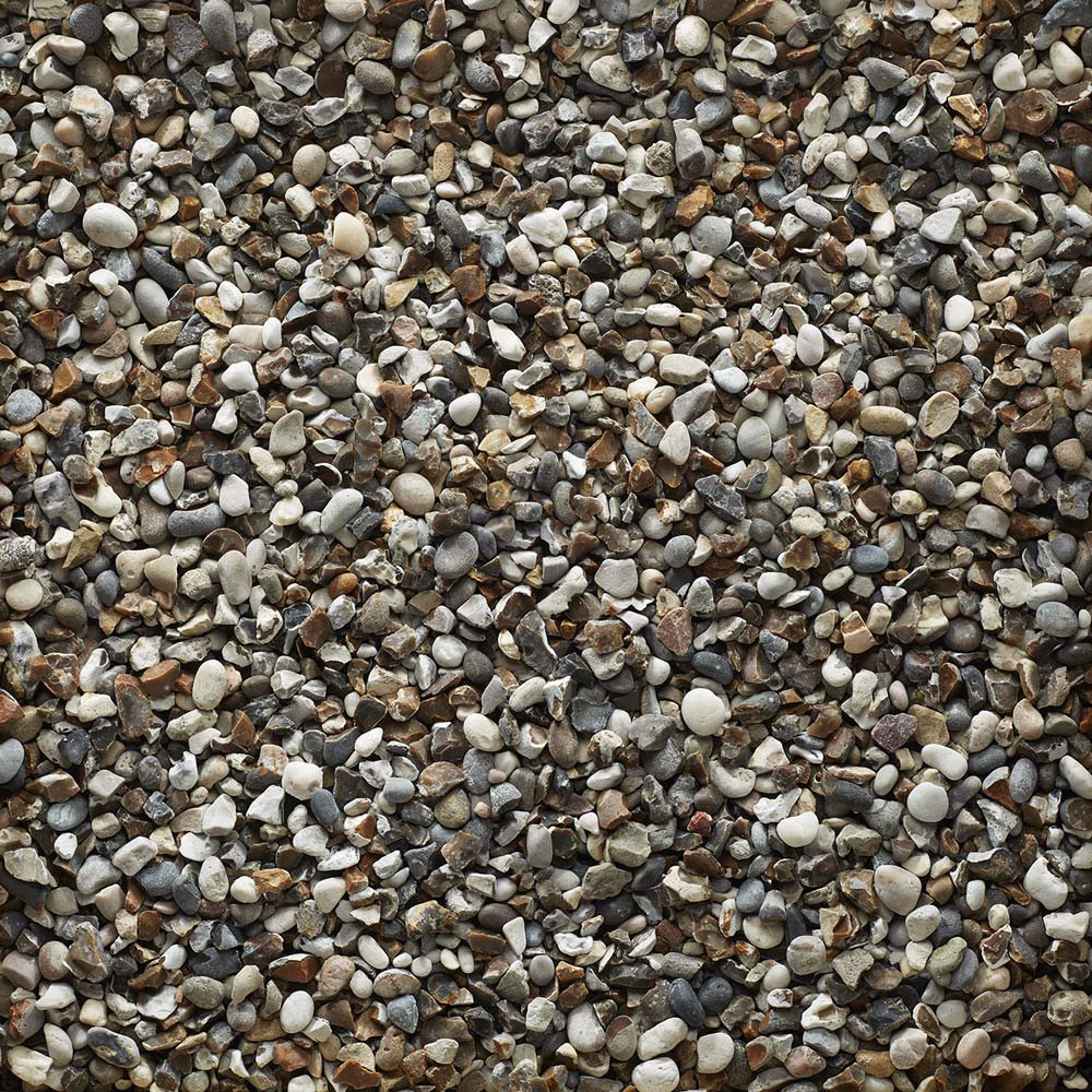Supplied in bulk bags of 850kg, this angular flint-based gravel comprises a broad range of colours, including brown, charcoal, cream, gold and white, which will complement a wide range of outdoor features, such as plants and flowers, paving stones and bricks.