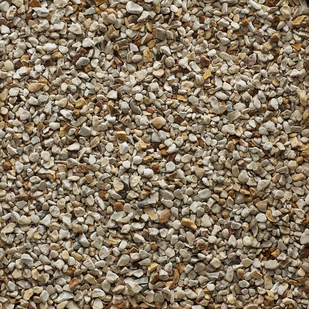 • Rounded stone chippings featuring a versatile blend of beige, gold, brown, cream and grey tones