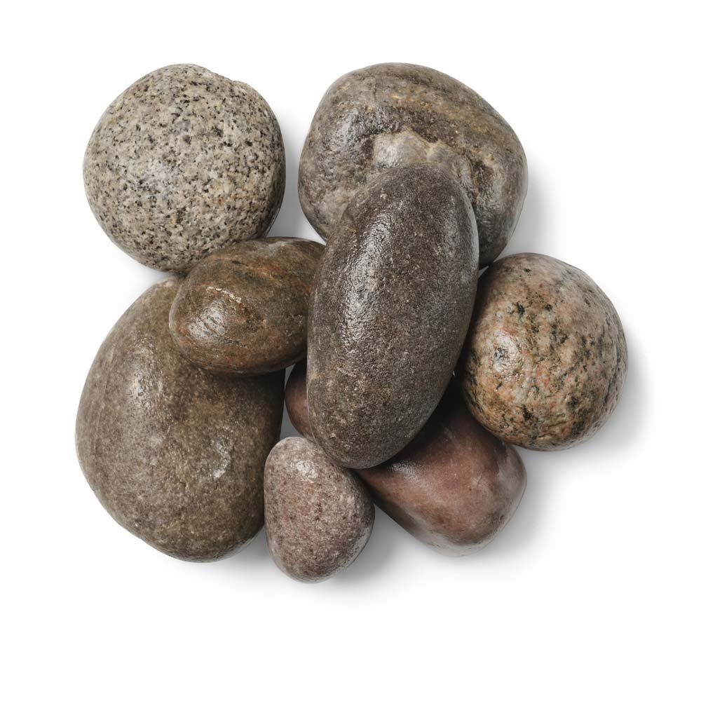 • A charming mix of premium quality naturally veined, river-worn cobbles featuring a wide array of colours, including grey, orange, sand, red, and blue tones