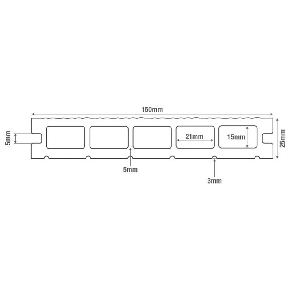 Features & Benefits: Cladco Woodgrain Hollow Composite Decking Board 4m - Light Grey