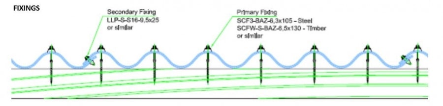 • Sheet coverage width: 973.5mm (an overlap each side of half a corrugation)
