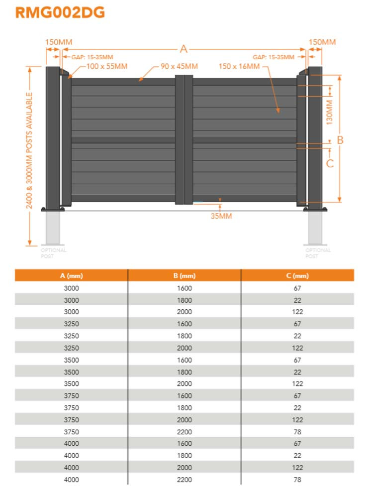 The Sterling Fully Finished Aluminium Double Swing Driveway Gate is available in various sizes to suit your driveway's specifications. Choose from either Black or Grey powder-coated finishes for a sleek, modern and high-end look.
