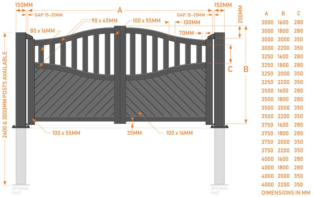 Features & Benefits: Door Superstore Winchester Fully Finished Aluminium Double Swing Driveway Gates