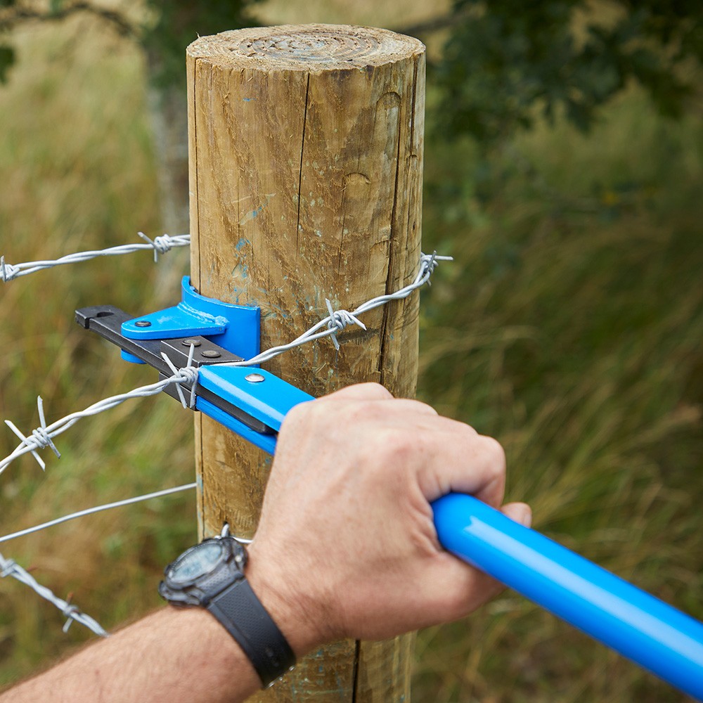 The Draper Fence Wire Tensioning Tool is an Expert Quality tool that allows the tensioning of wire (including barbed wire) up to 4mm in diameter before stapling onto wooden fence posts. This tool provides great leverage thanks to its 600mm long handle, and can be used easily by one person. It also features a pivoting Durbar steel locating foot, allowing it to grip onto any post type while straining wire.