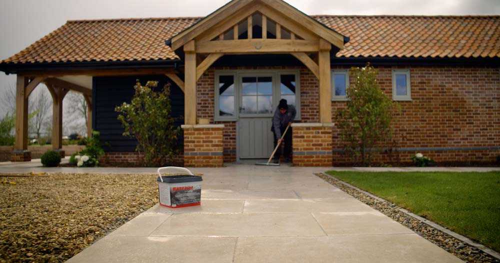 Easyjoint can be used in wet or dry conditions and is sold in a 12.5kg tub which will cover an average of 7m² depending on slab size and joint width.