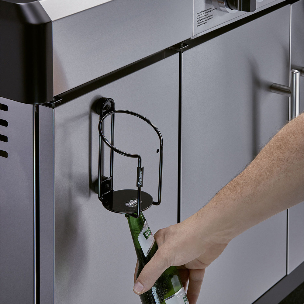 • Magnetic bottle holder for easy access to drinks while barbecuing