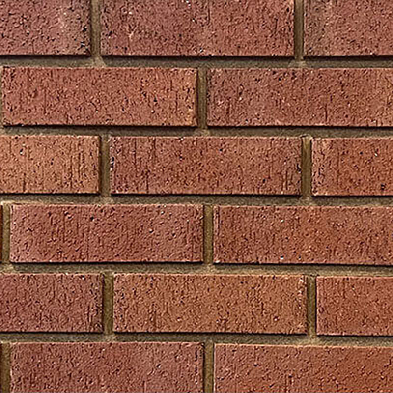 • A red-coloured facing brick featuring a variety of reddish-brown tones
