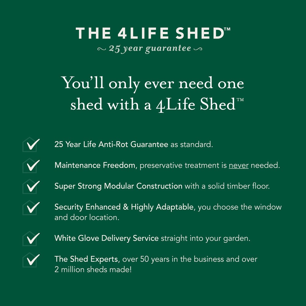 Features & Benefits: Forest Garden 4LIFE 1 Window Apex Shed with Single Door - 4ft x 6ft