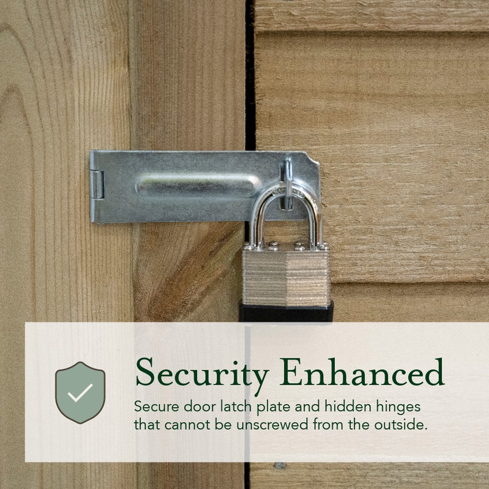 Made from FSC certified timber, this Forest Garden Shed is constructed using straight-cut 7mm boards. These boards overlap to provide flexibility, which allows natural movement of the timber in changing seasons, whilst also aiding in rainwater run-off. With a solid timber floor, rather than the more common OSB, this shed enables you to store heavier items without cracking or breaking.
