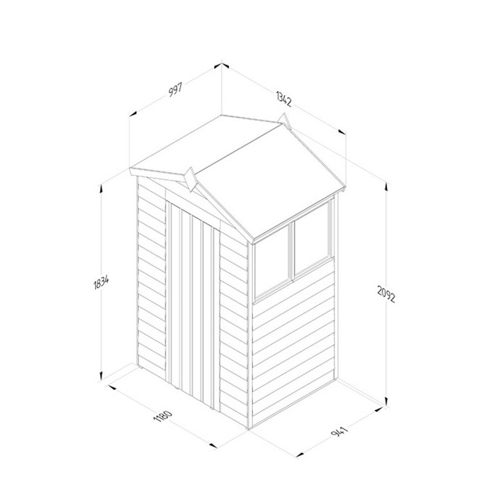 Forest Garden 4LIFE 2 Windows Apex Shed with Single Door - 4ft x 3ft