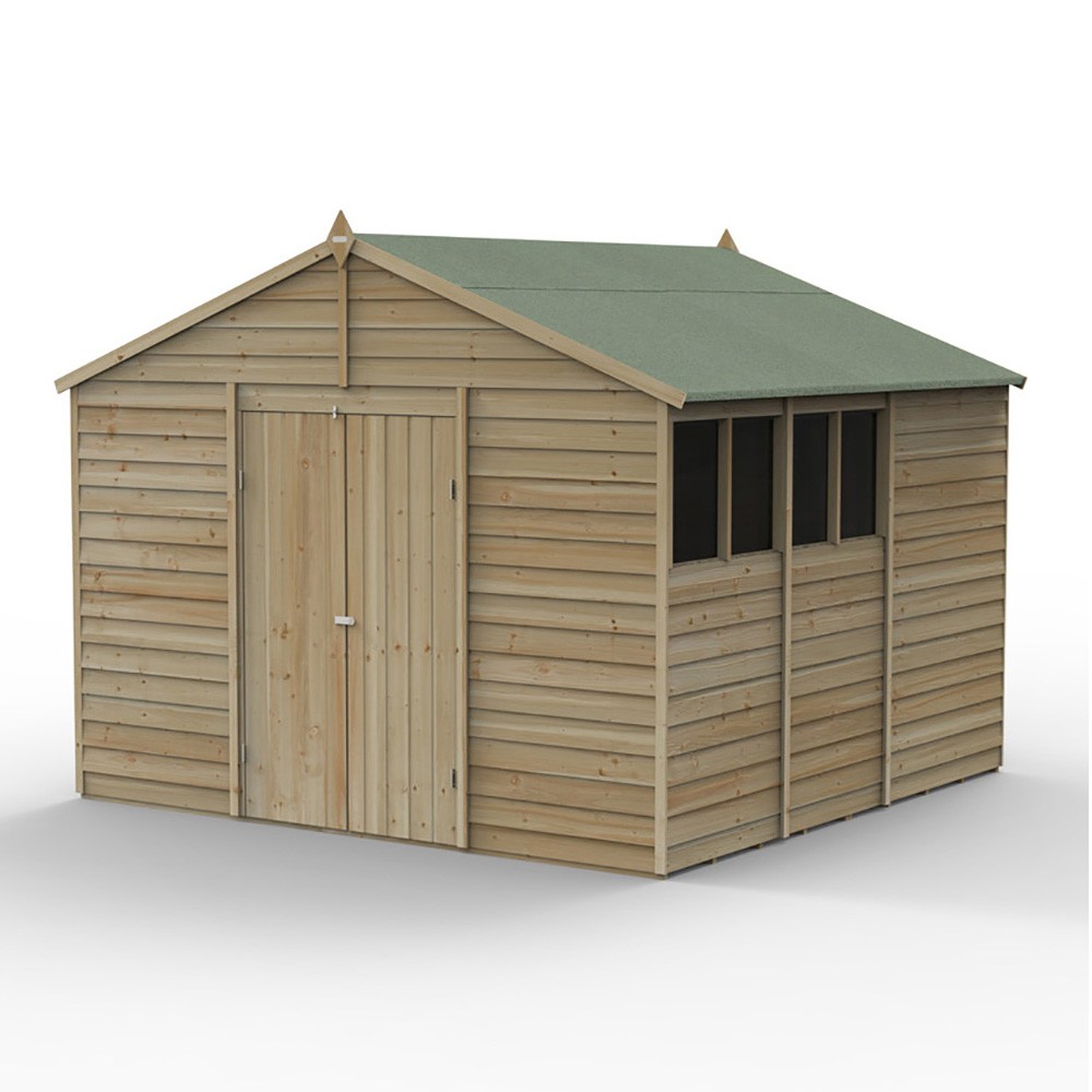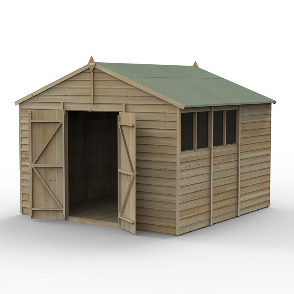 Forest Garden 4LIFE 4 Windows Apex Shed with Double Door - 10ft x 10ft