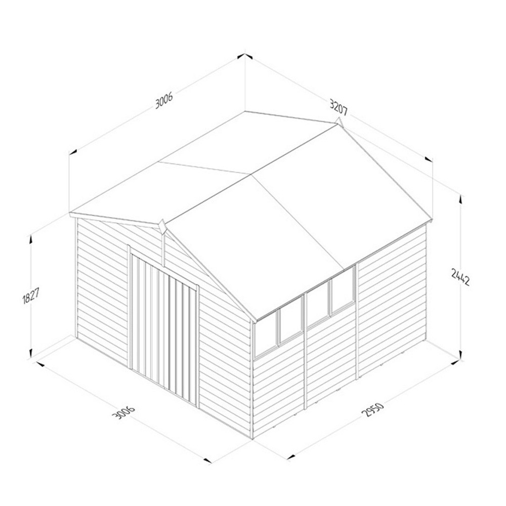 Features & Benefits: Forest Garden 4LIFE 4 Windows Apex Shed with Double Door - 10ft x 10ft