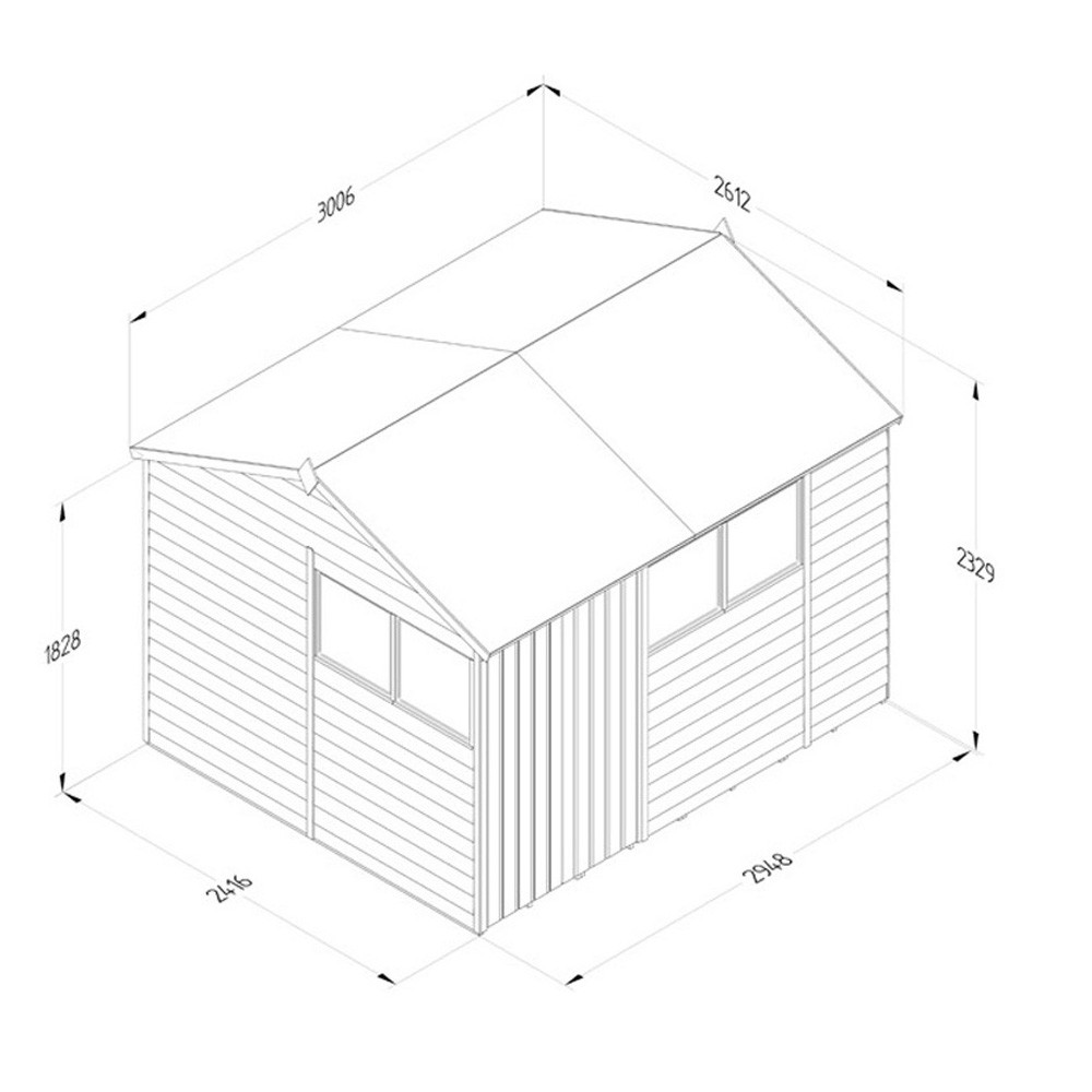 The Forest Garden 4LIFE 10ft x 8ft 4 Windows Reverse Apex Shed with Double Door is strong and secure and can be used as a simple garden storage solution or even a larger workshop area. It will look good in any garden featuring a reverse apex style roof, smooth-planed barge boards and diamond-shaped finials.