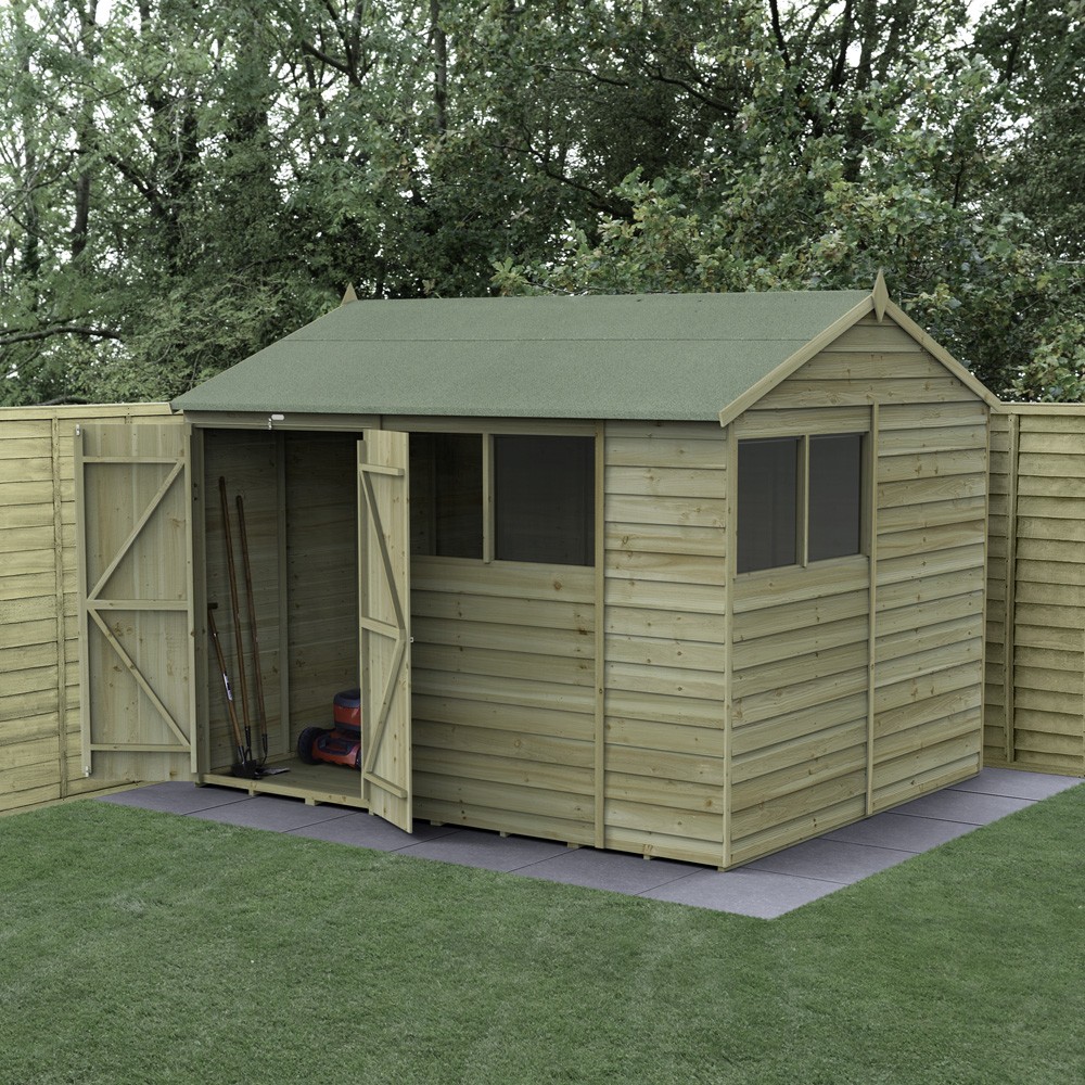 Features & Benefits: Forest Garden 4LIFE 4 Windows Reverse Apex Shed with Double Door - 10ft x 8ft
