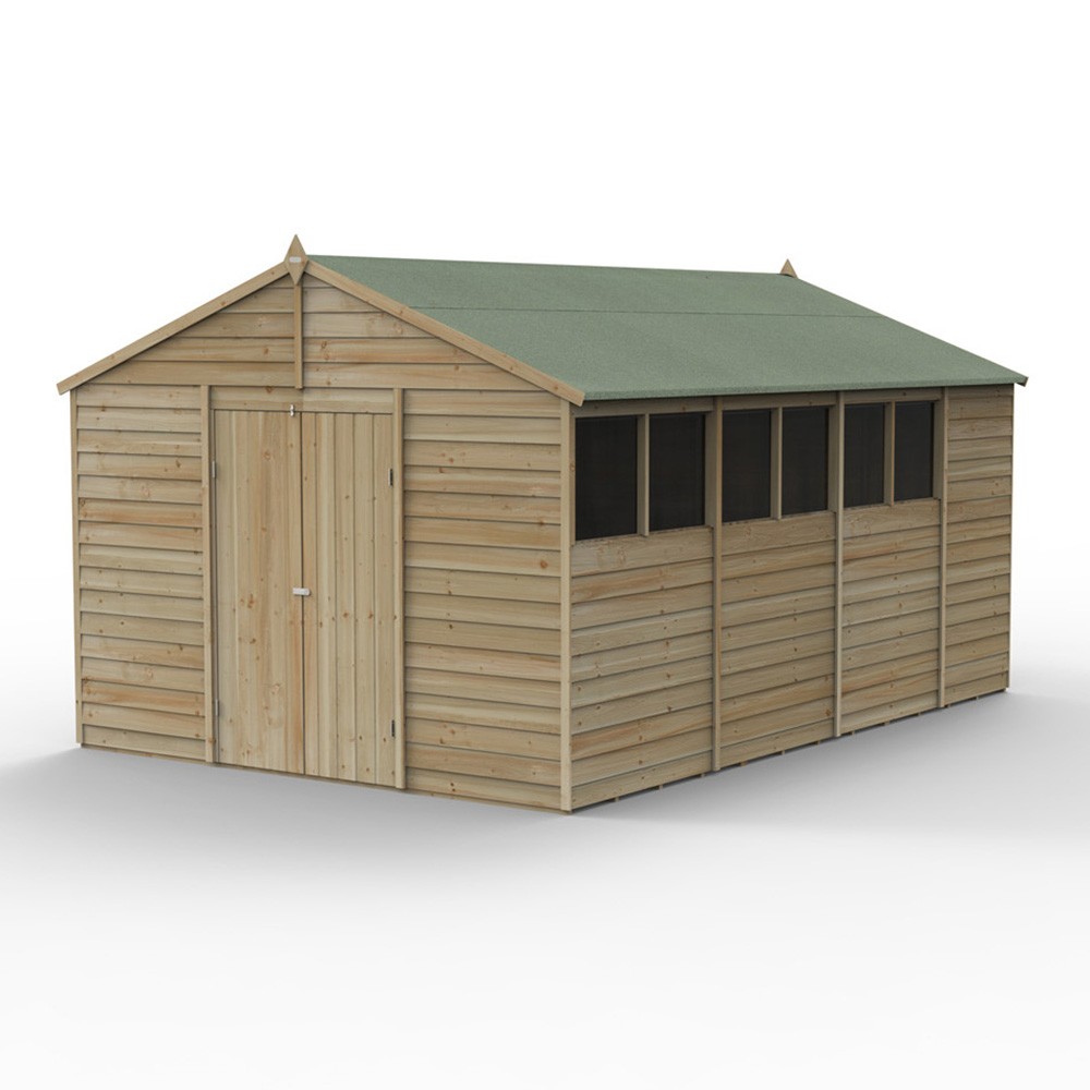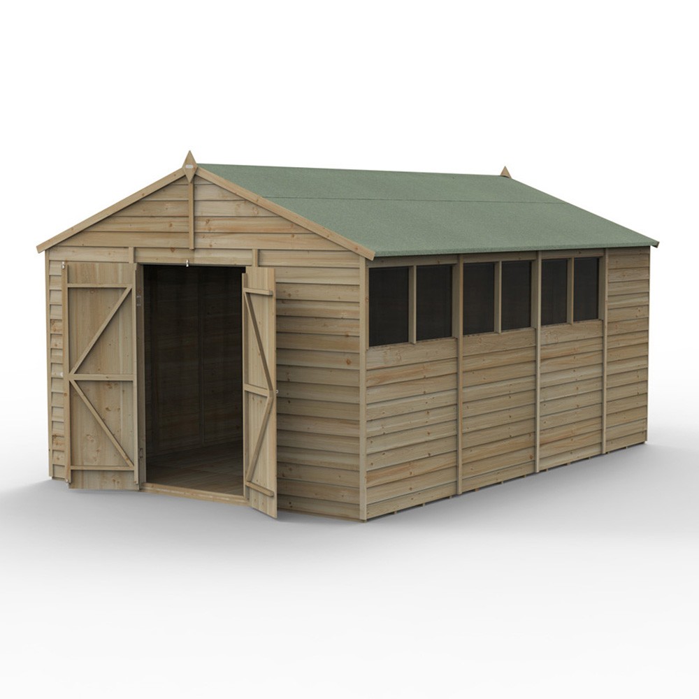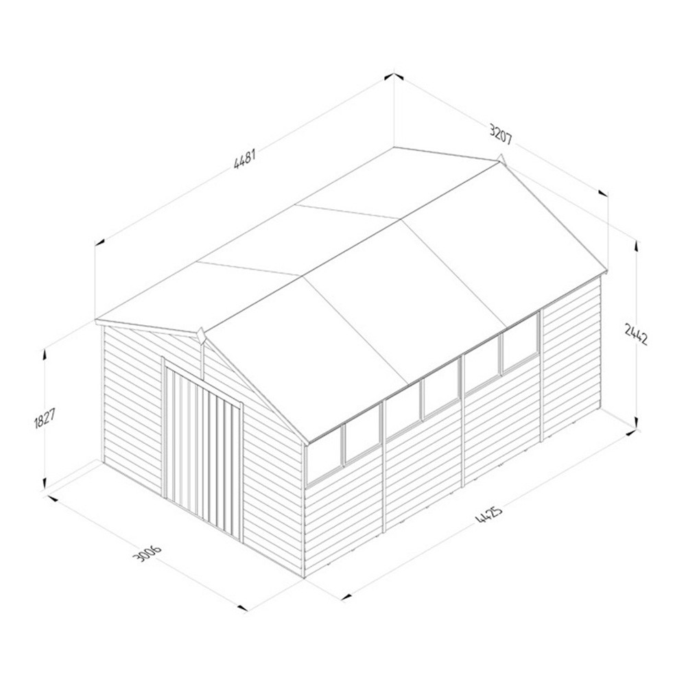 Forest Garden 4LIFE 6 Windows Apex Shed with Double Door - 10ft x 15ft
