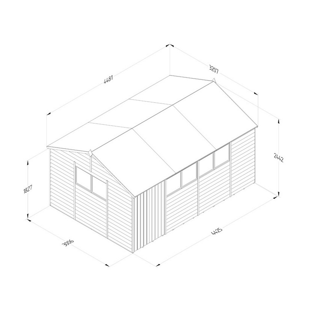 Forest Garden 4LIFE 6 Windows Reverse Apex Shed with Double Door (Home Delivery) - 15ft x 10ft