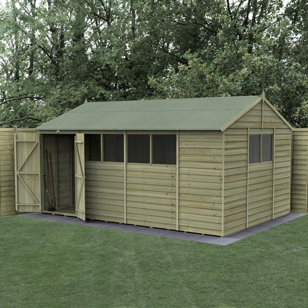 Features & Benefits: Forest Garden 4LIFE 6 Windows Reverse Apex Shed with Double Door (Home Delivery) - 15ft x 10ft
