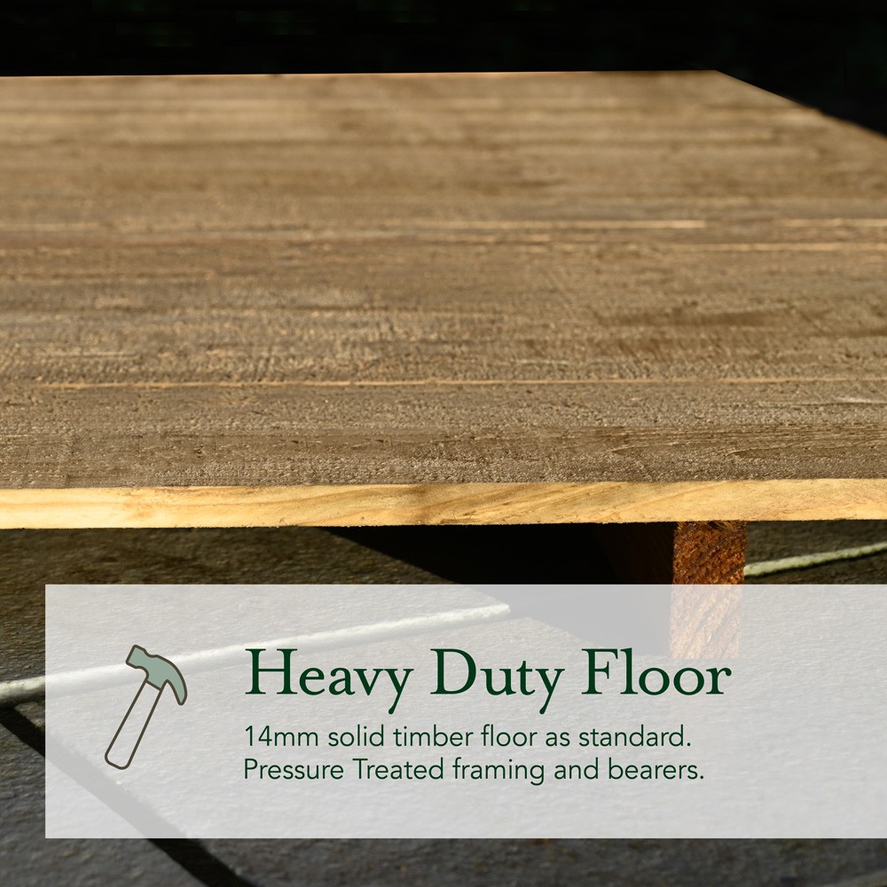 Constructed from FSC-certified timber, the shed features 7mm straight-cut overlapping boards that allow natural timber movement with seasonal changes and promote efficient rainwater drainage. Its pressure treated for long-lasting durability and comes with a 25-year anti-rot guarantee, no preservative treatment required, making it completely maintenance free.