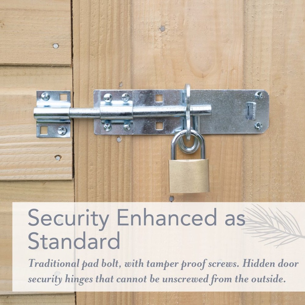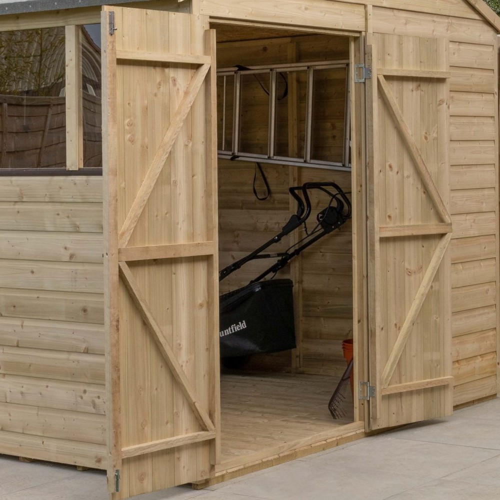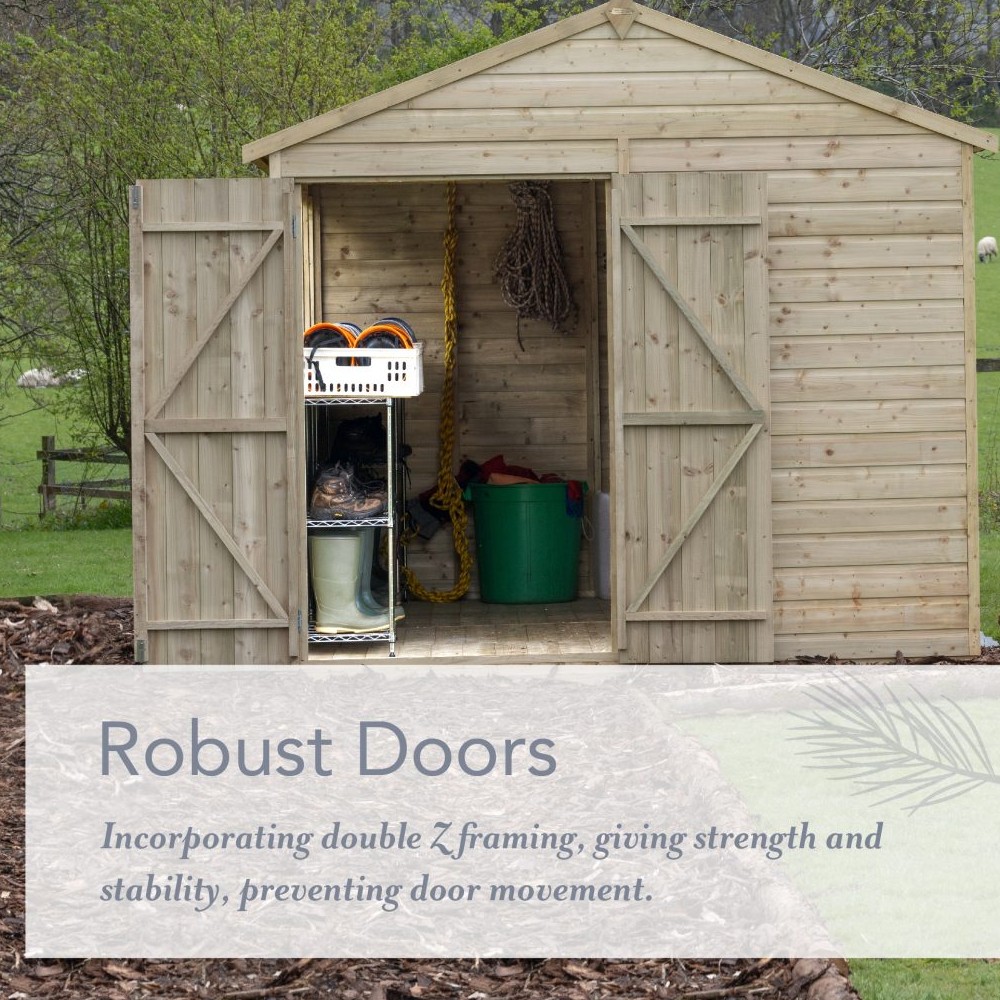 Made from robust, interlocking, shiplap cladding throughout, giving this shed a weatherproof & watertight storage solution. With double Z framed doors that give strength and prevents door movement. All timber is FSC certified, this shed has been pressure treated providing a 25-year anti-rot guarantee. Maintenance free as no preservative treatment is needed.