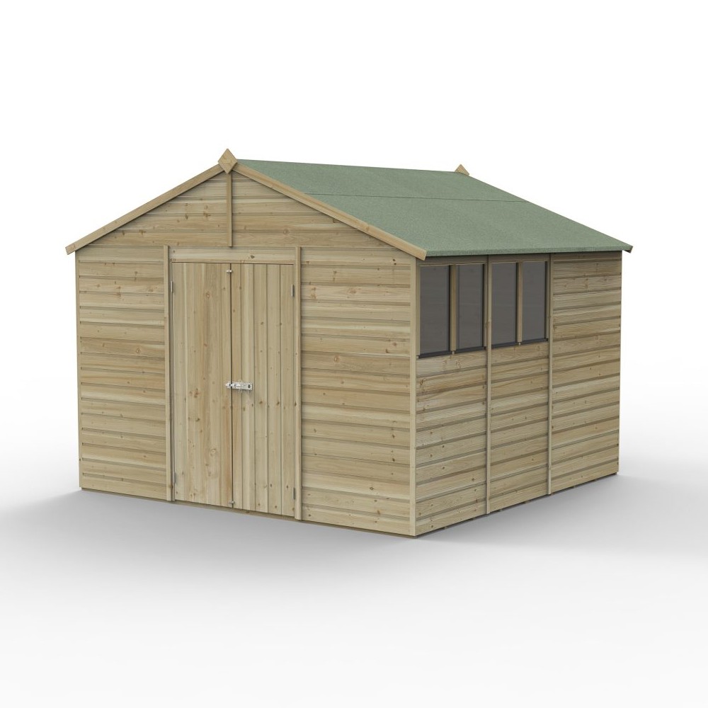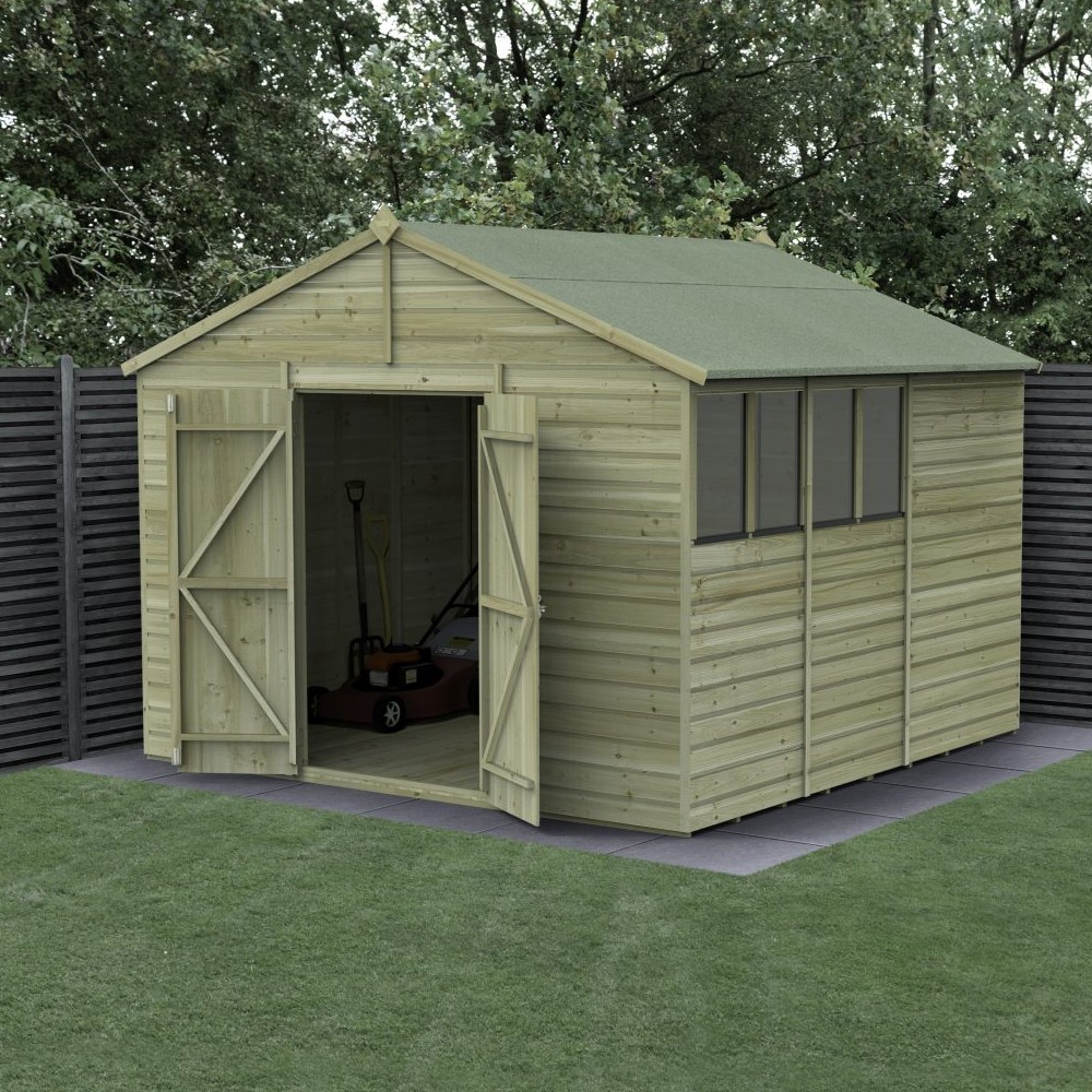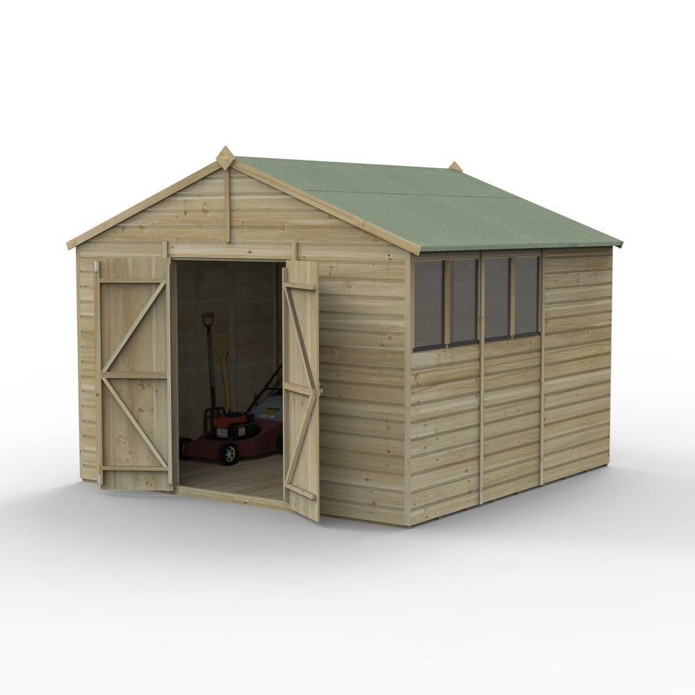 Features & Benefits: Forest Garden Beckwood 4 Windows Apex Shed with Double Door - 10ft x 10ft