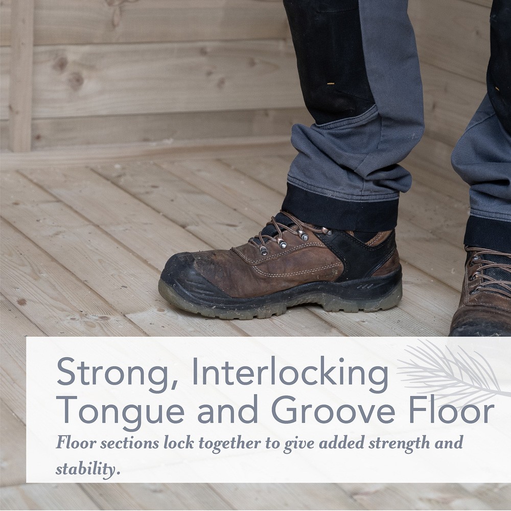 Made by using robust, interlocking, shiplap cladding, this shed is watertight and weather beating. Pressure treated, providing a 25-year anti-rot guarantee, it is maintenance free because preservative treatment is not needed. With a double Z frame door, that can be fitted with a left or right-hand opening, it offers extra strength and also prevents the door from dropping.
