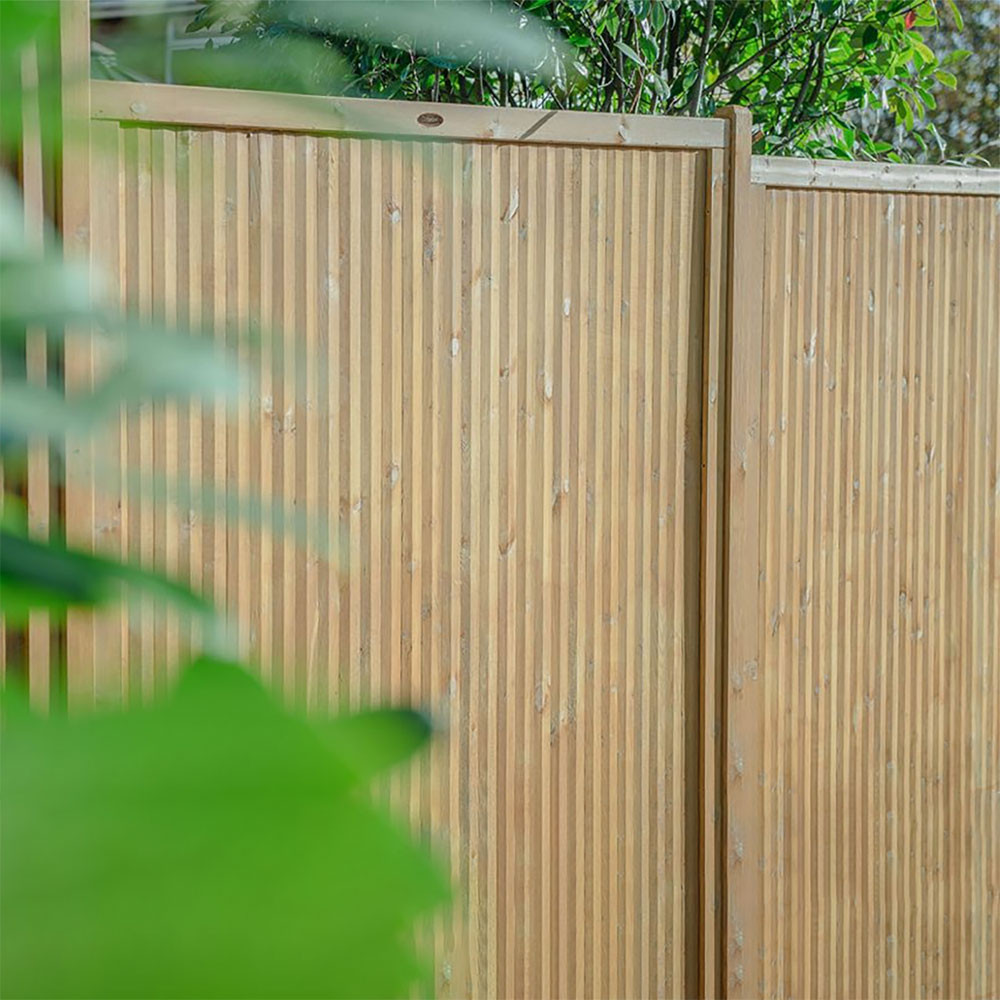 The Decibel Noise Reduction Fence Panel's 17mm thick section boards are made from FSC® certified pressure-treated wood. They are interlocked with extended tongue and grooves to block external noise from penetrating the panels. They are then mounted in a rebated frame to provide strength and help prevent gaps from developing across the face of the board. Thanks to the panel's Triform technology, each board has a triangular profile on each side of the panel, helping to further disperse unwanted noise as sound waves. To ensure your fence panel lasts for many years, each fence panel comes with a 15-year anti-rot guarantee as standard.