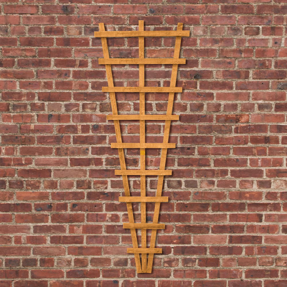 • Heavy-duty golden brown fan-shaped trellis suitable for garden fence panels and brick walls