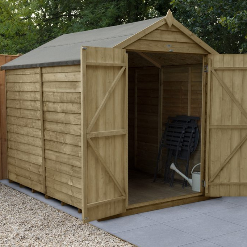 Features & Benefits: DISCON - Forest Garden Overlap Pressure Treated Apex Shed with Double Door & No Windows