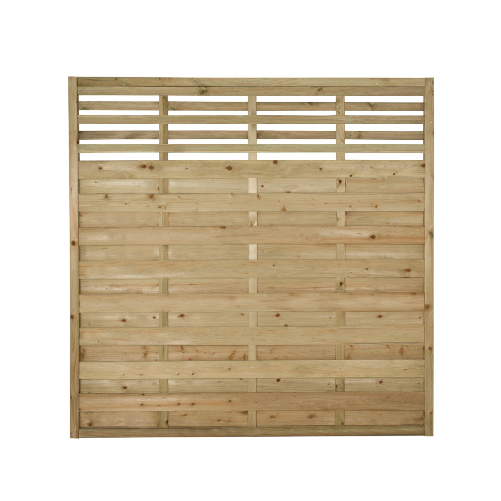 Featuring horizontally mounted, smooth-planed softwood boards with a sleek grooved finish, the modern Pressure Treated Decorative Kyoto Fence Panel is a high quality and stylishperimeter boundary that will complement any garden space with a contemporary style. Available in a r... Read More