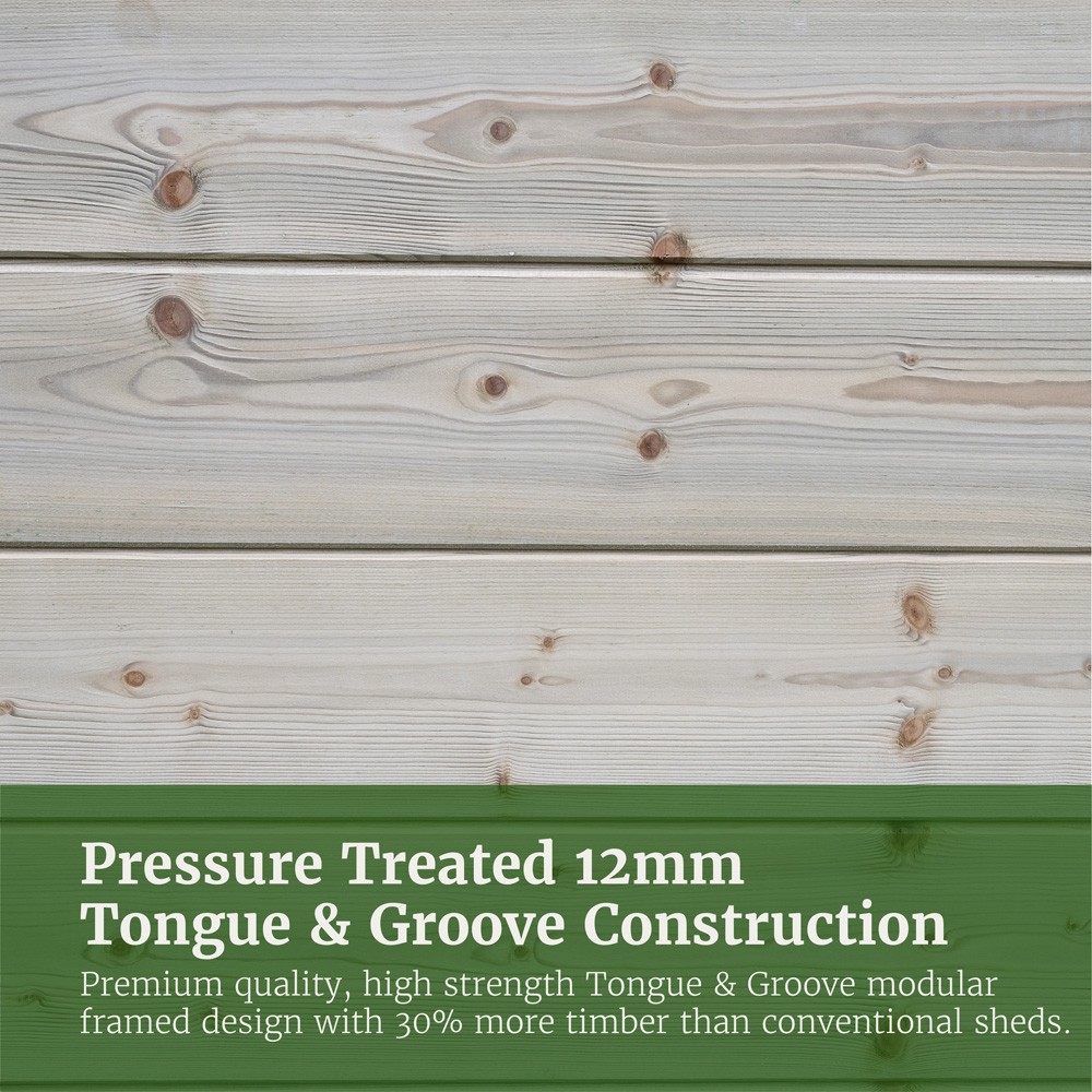 Made in the UK from FSC certified timber, this shed has been pressure treated giving a 25-year anti-rot guarantee, making it maintenance free as no preservative treatment is required. With premium tongue & groove construction, the Timberdale shed is Forest Gardens strongest.