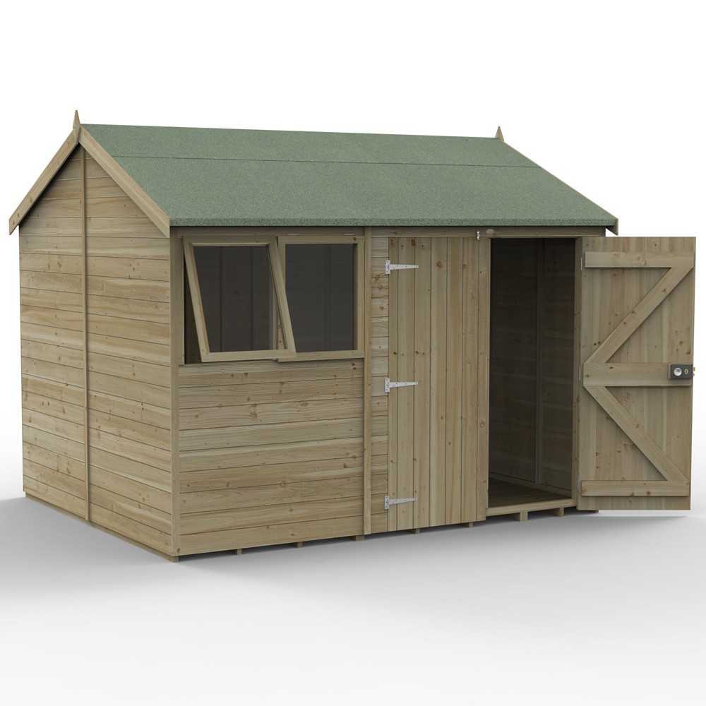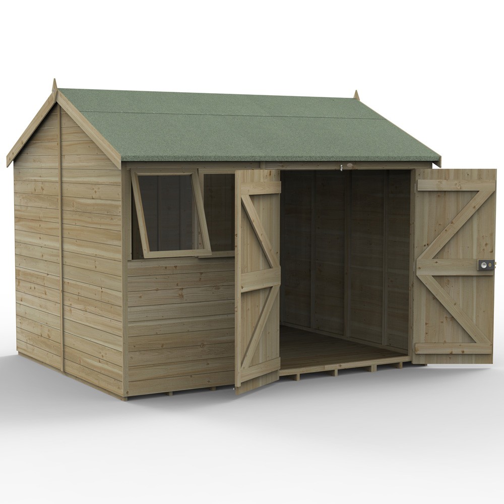 Features & Benefits: Forest Garden Timberdale 2 Windows Reverse Apex Shed with Double Door - 10ft x 8ft
