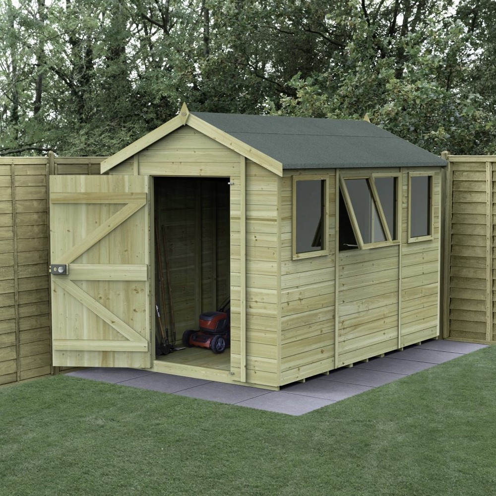 Features & Benefits: Forest Garden Timberdale 4 Windows Apex Shed with Single Door - 10ft x 6ft