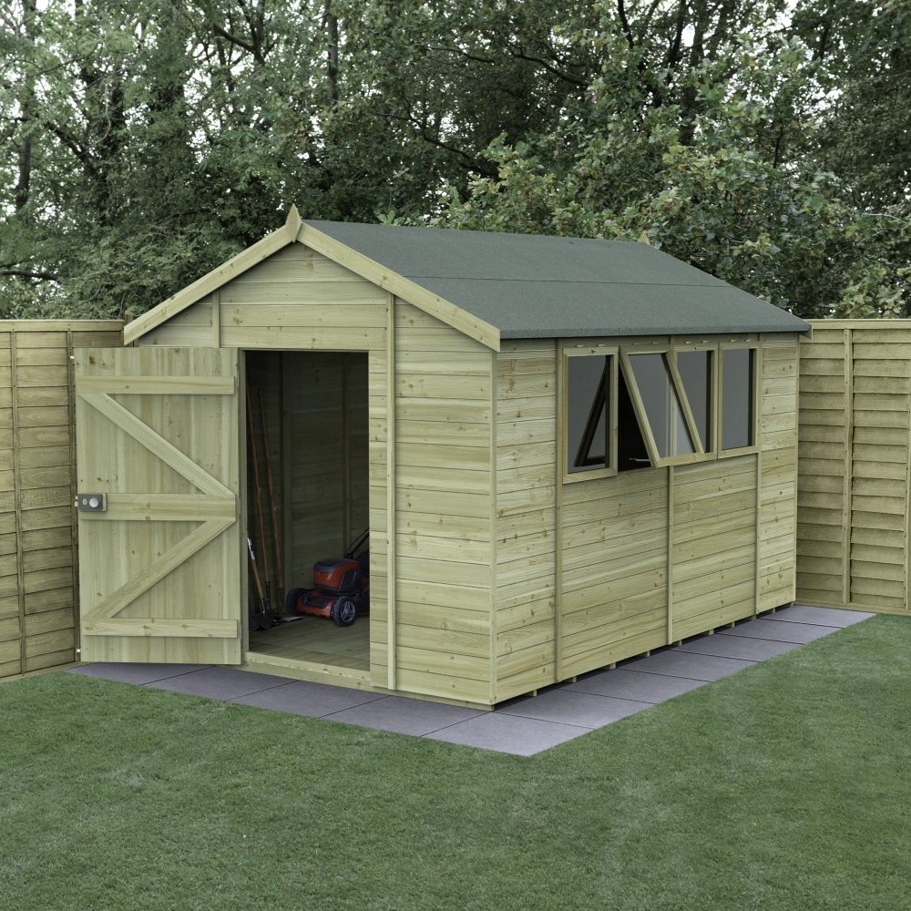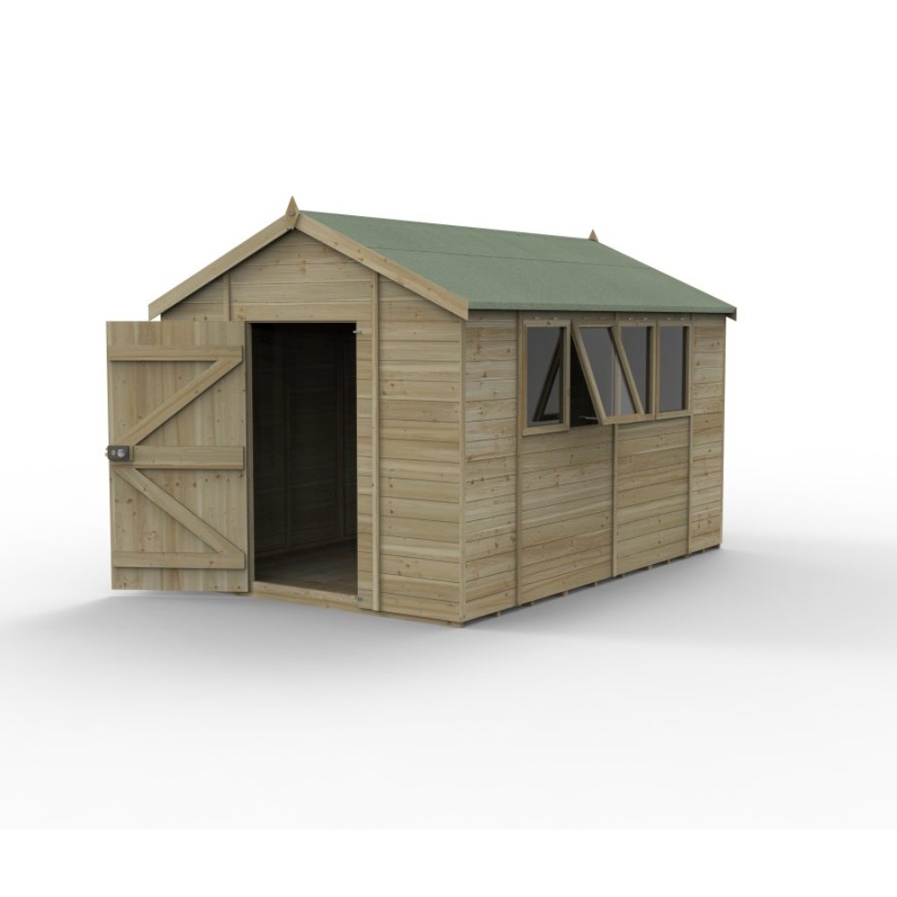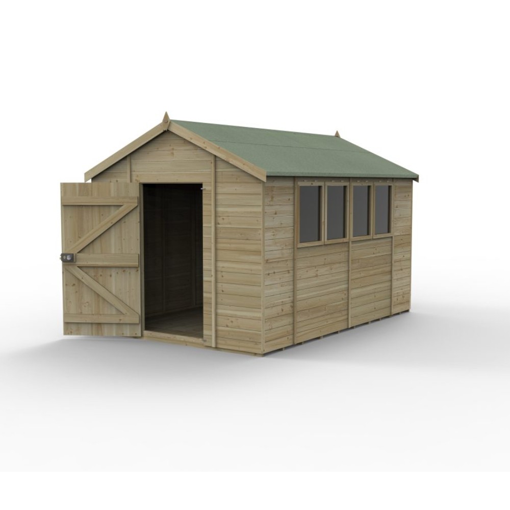 Features & Benefits: Forest Garden Timberdale 4 Windows Apex Shed with Single Door (Home Delivery) - 12ft x 8ft