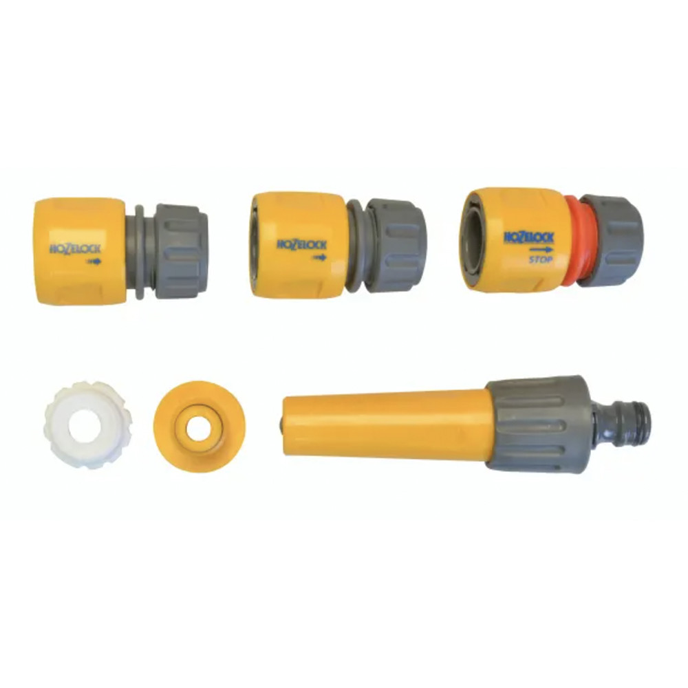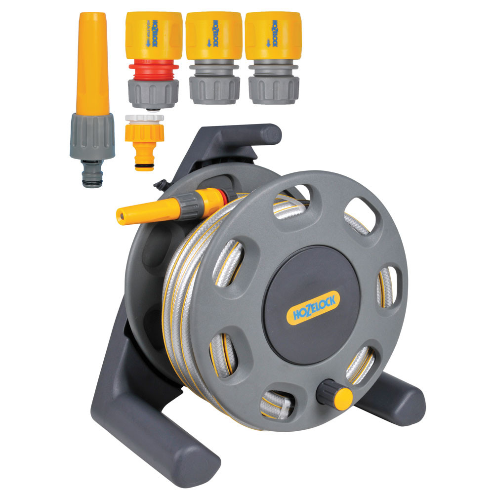The hose reel comes with two hose end connectors, a threaded tap connector and an adjustable nozzle.