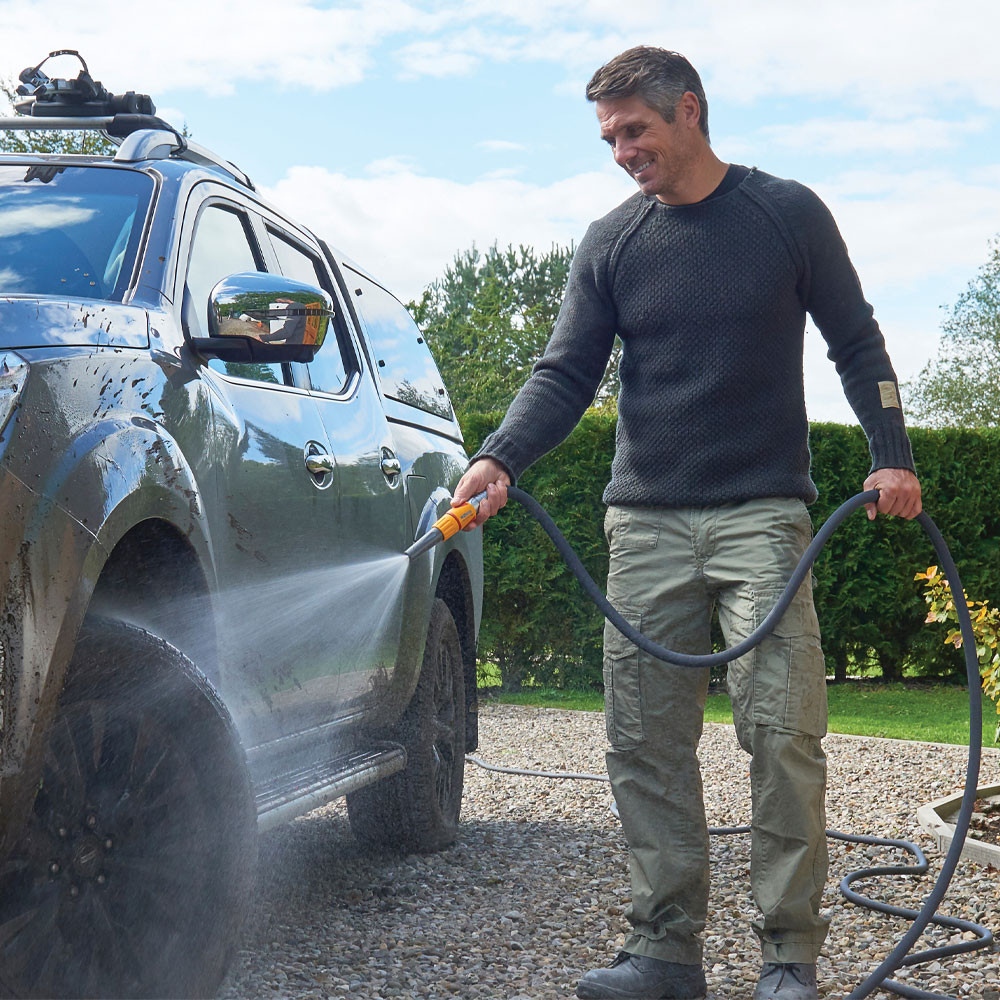 This Hozelock Tuffhoze is a 25-metre advanced hybrid garden hose which combines traditional PVC and textile. Made from durable woven fibre technology, it is up to 50% lighter compared to traditional hoses on the market. The fibre technology also makes it easier to manoeuvre.