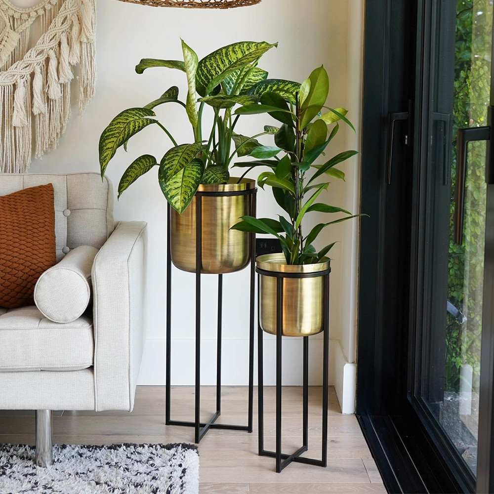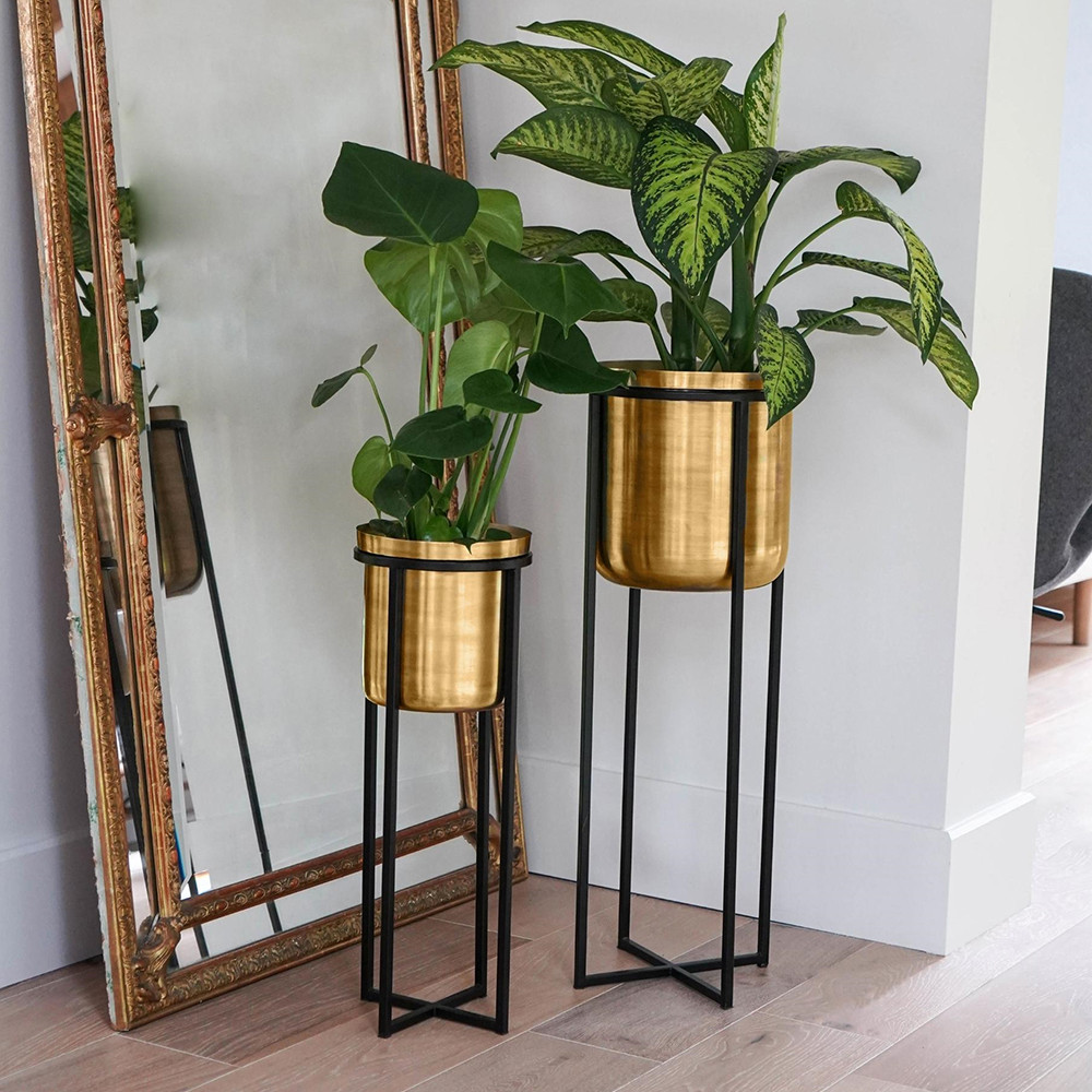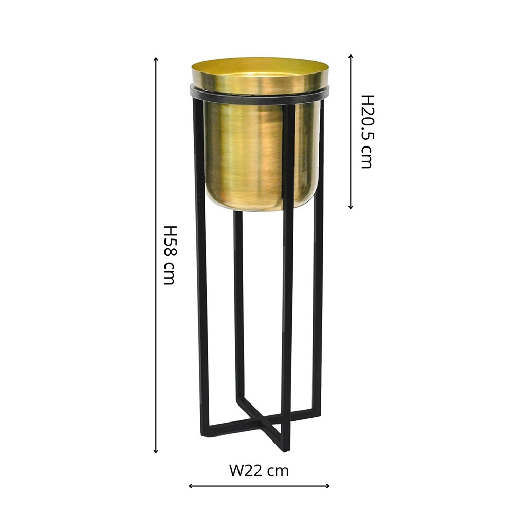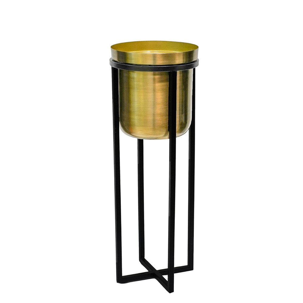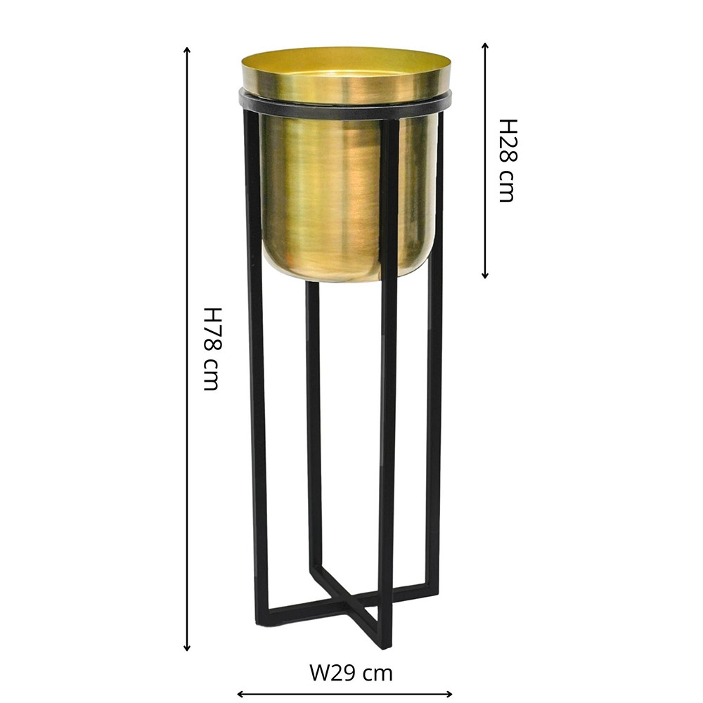 • A stylish, modern design comprising a black metal stand and a gold-toned planter