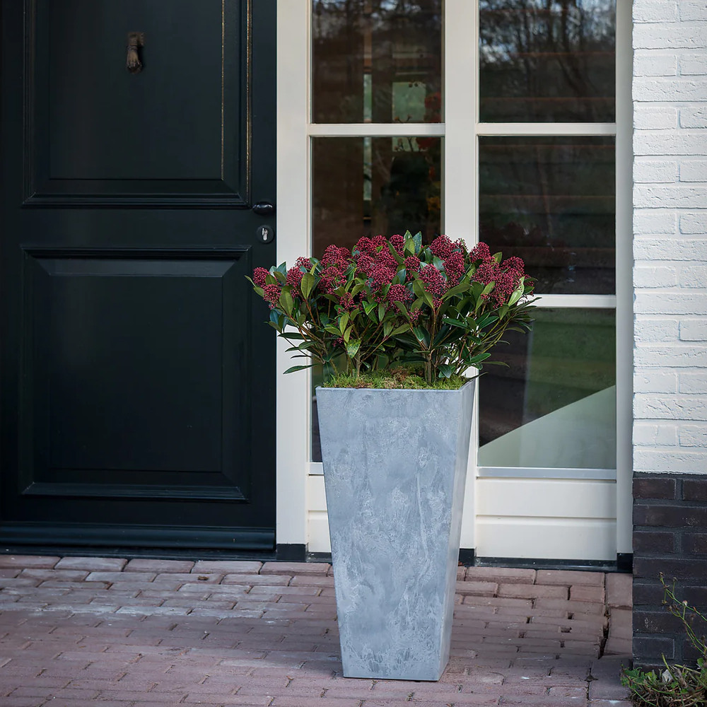 Revitalise your outdoor area with this 490mm x 260mm Ivyline Ella Grey Outdoor Artstone Vase. Boasting a square base and tall, slender profile, this vase adds a touch of style to verandas, patios, or even the space outside your front door, instantly boosting kerb appeal. Seamlessly fitting into various garden schemes, especially minimalist and contemporary designs, this decorative plant vase truly radiates.