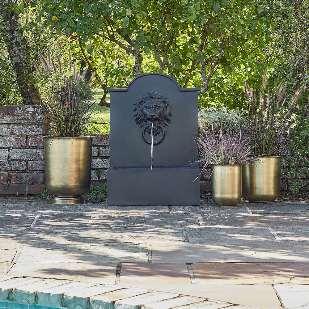 Adorned with a classic lion head design, this Ivyline Granite Outdoor Luxury Lion Water Feature pays homage to the grand architectural designs of the past, creating a true emblem of sophistication for your traditional-style garden. Sit back and relax as the calming trickling of water provides a soothing and tranquil atmosphere.