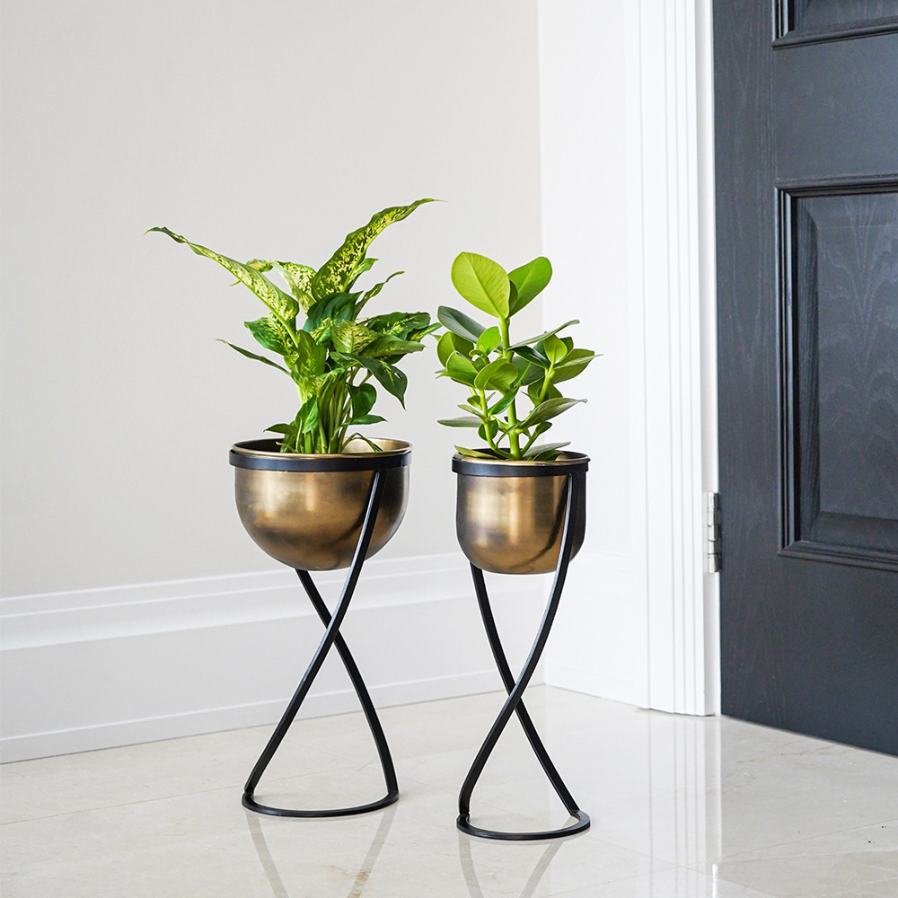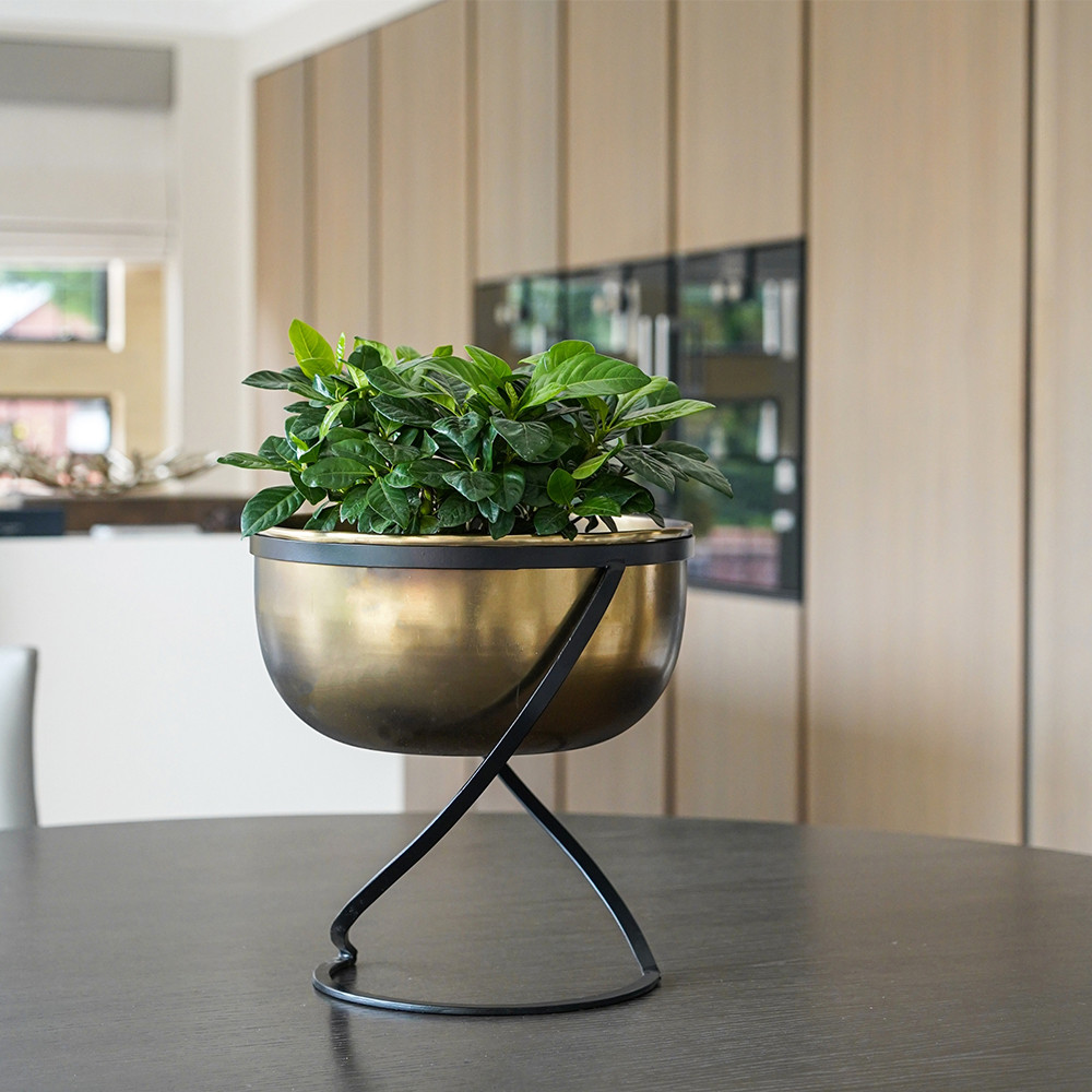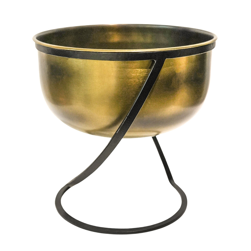 Features & Benefits: Kensington Brass Indoor Round Metal Planter on Stand