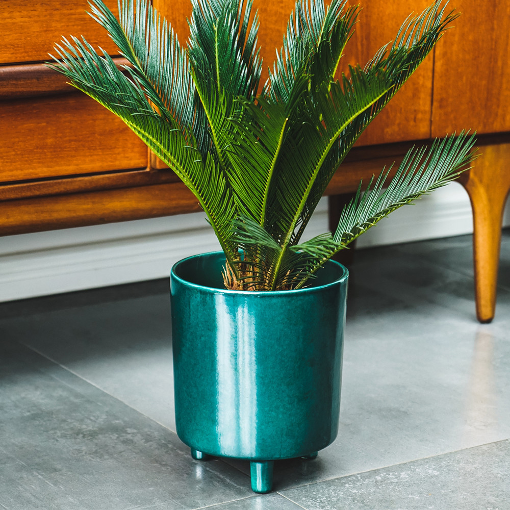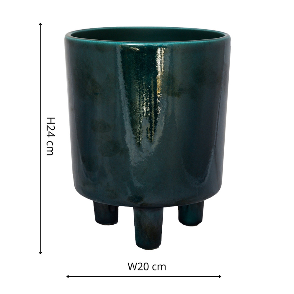 With its vibrant blend of teal and emerald green tones, this planter injects a burst of colour that instantly revitalises your room. Designed in classic ceramic, its premium glaze imparts a beautiful sheen, exuding understated elegance. As well as ensuring stability for your cherished plants, the planter's three feet add a quirky design feature that adds to its overall appeal.