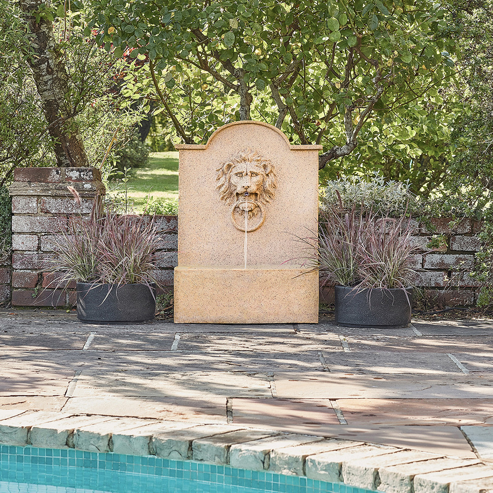 Adorned with a classic lion head design, this Ivyline Sandstone Outdoor Luxury Lion Water Feature pays homage to the grand architectural designs of the past, creating a true emblem of sophistication for your traditional-style garden. Sit back and relax as the calming trickling of water provides a soothing and tranquil atmosphere.