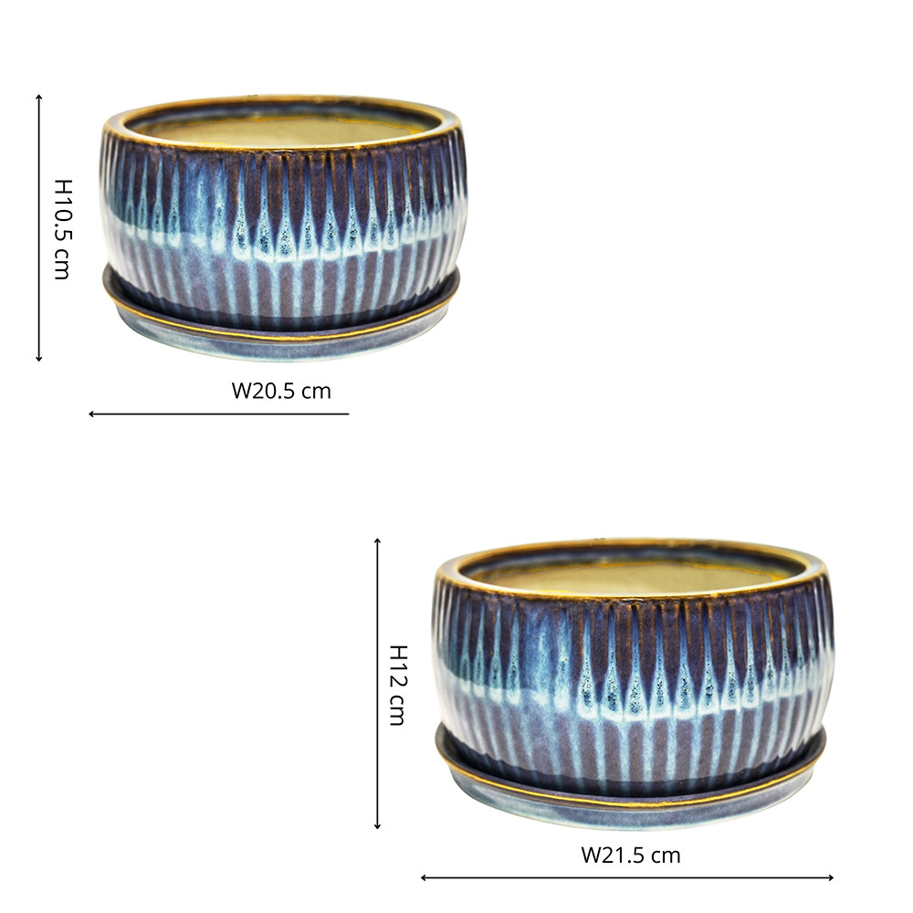 The smaller planter has a height of 105mm and a width of 205mm, with an internal diameter of 170mm. On the other hand, the larger planter stands tall at 120mm in height and spans 245mm in width, with an internal diameter of 215mm.