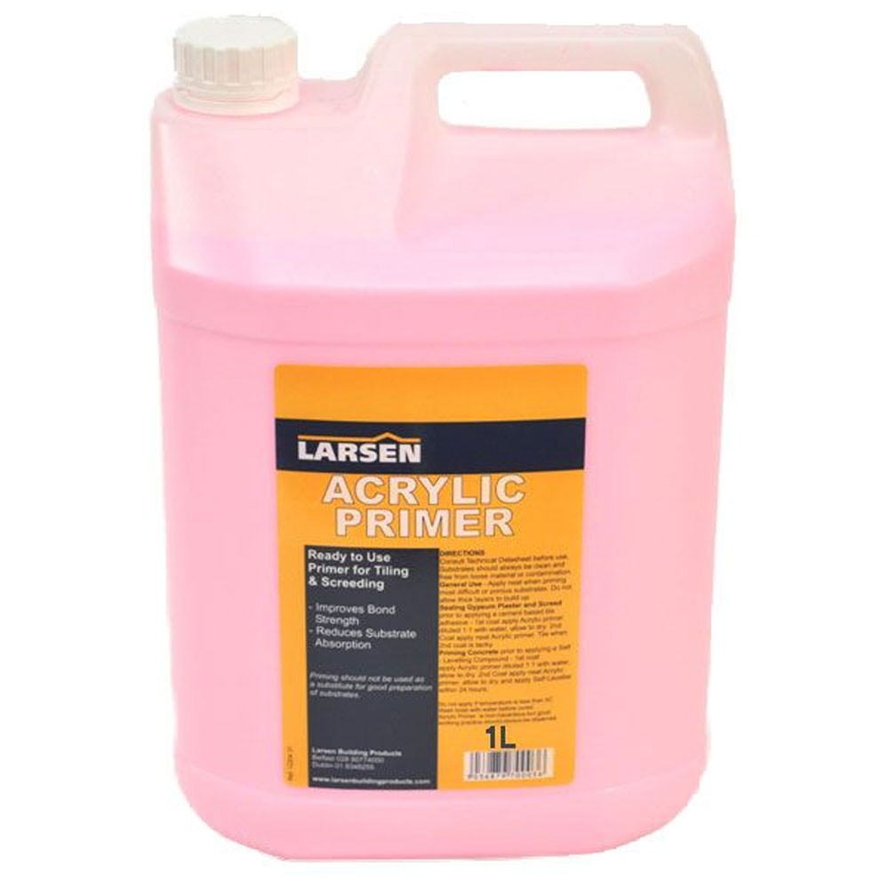 Introducing the Larsen Acrylic Primer for Porous Substrates - 1L! This product is the perfect solution for those difficult substrates that are hard to work with when tiling. Whether it's gypsum plasters or screeds, this ready-to-use primer will make the job a breeze. The water-based polymer emulsion and improved adhesion ensure that your tiles will be secure and long-lasting.