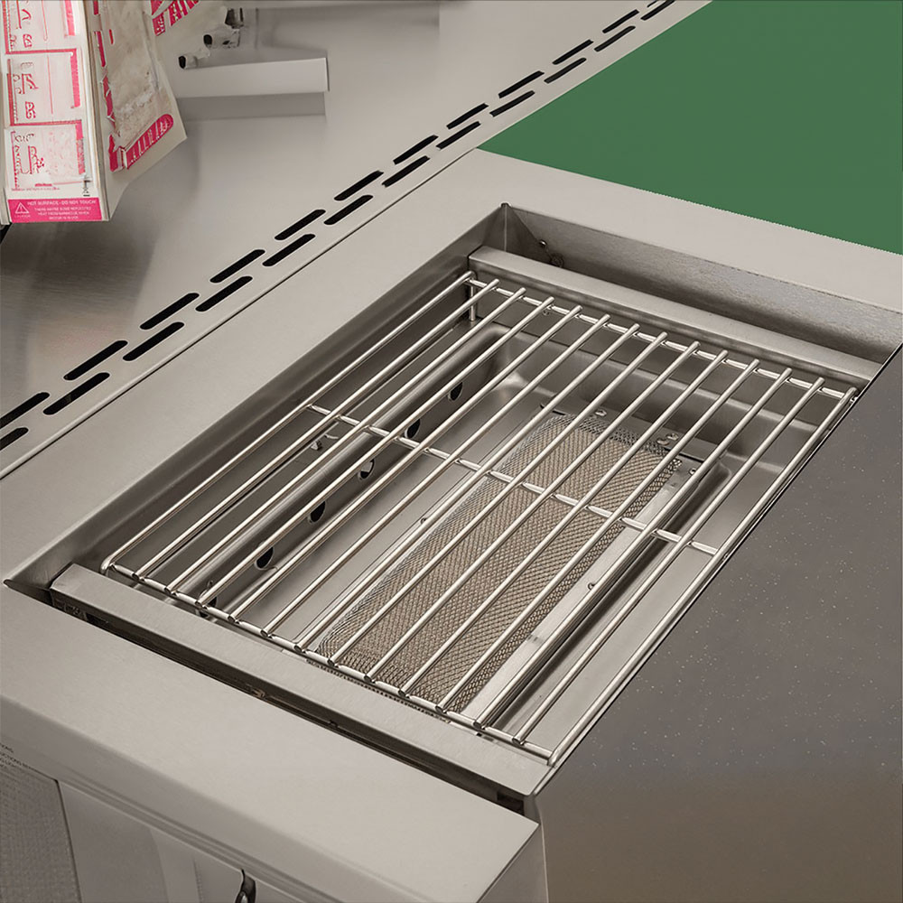 • The sizzle burner is 270mm x 360mm (W x D) and the ice bucket is 200mm x 240mm x 300mm (H x W x D)