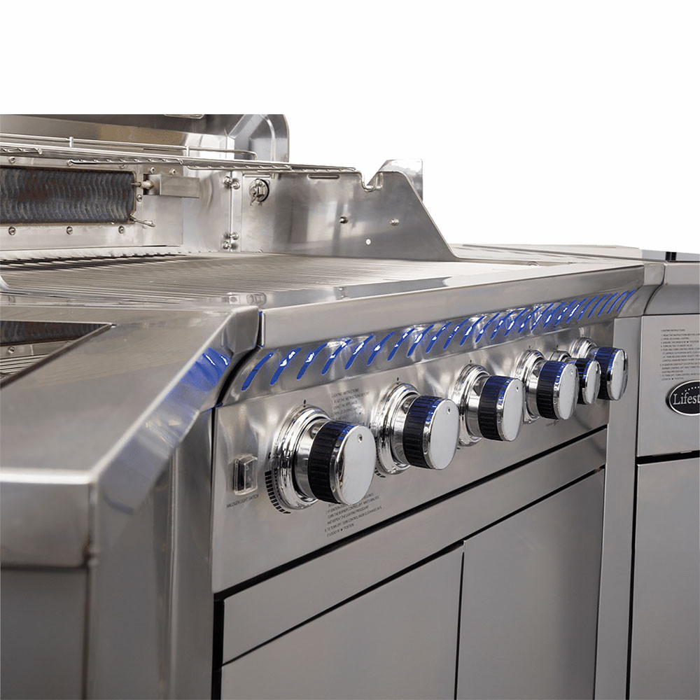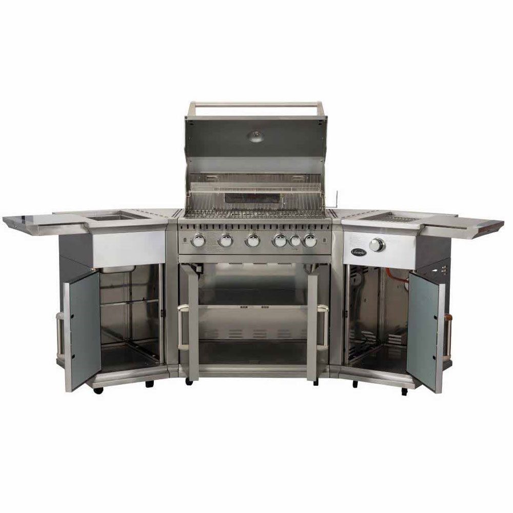 Perfect for lovers of the great outdoors, this Bahama Island Luxury Gas BBQ is a comprehensive outdoor kitchen and the pinnacle of the Lifestyle outdoor cooking range. Thanks to its five main burners, sizzle burner, and rotisserie back burner, you can effortlessly create delicious meals for parties, gatherings and other culinary events, bringing together food and nature for a brilliant summer experience.